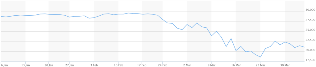 Dow Jones Industrial Average. (n.d.). Retrieved April 4, 2020, from https://www.marketwatch.com/investing/index/djia/charts